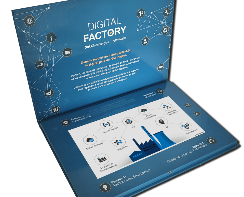 En réponse aux appels d’offre, pour des argumentaires de vente et supports de PRESTIGE ! La brochure A4 avec écran 10,1″ fait la différence !