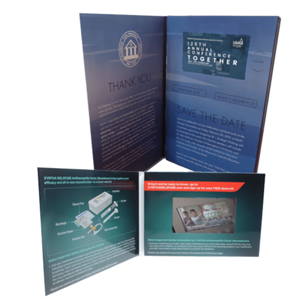 Brochure vidéo A5 écran 4,3″ – Format hors tout fermé A5 (épaisseur 1 cm ou 0.6 mm à préciser)