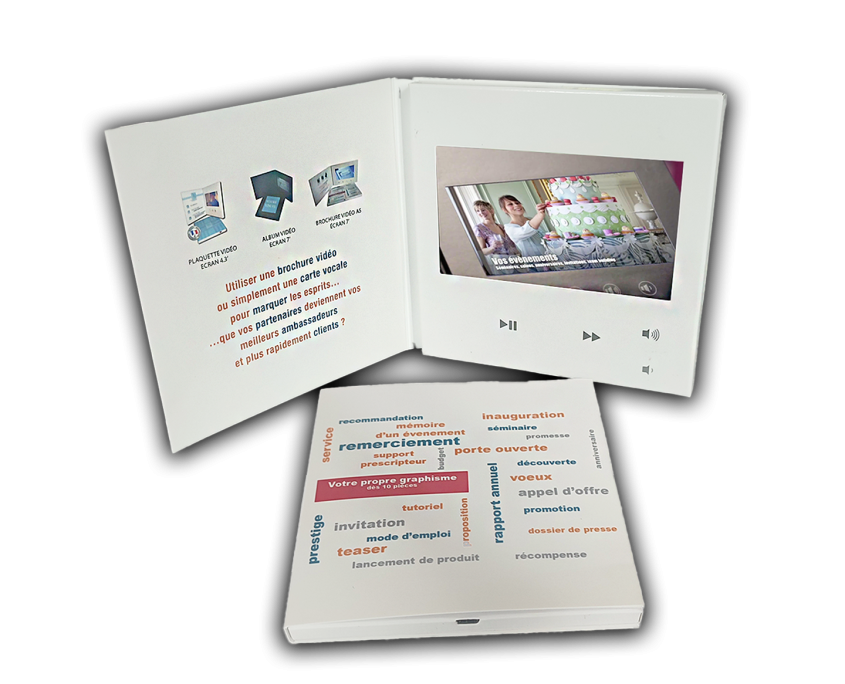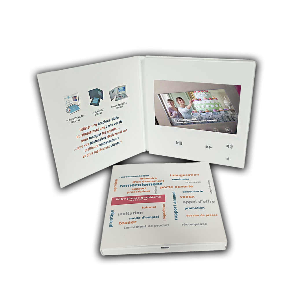 Carte vidéo de correspondance écran 4,3″ – Format 12×12 cm hors tout (épaisseur 1 cm)