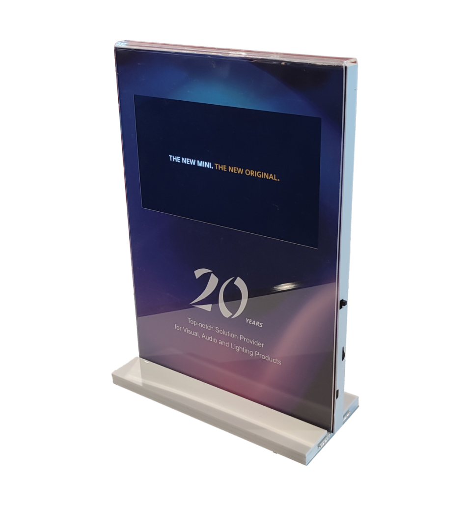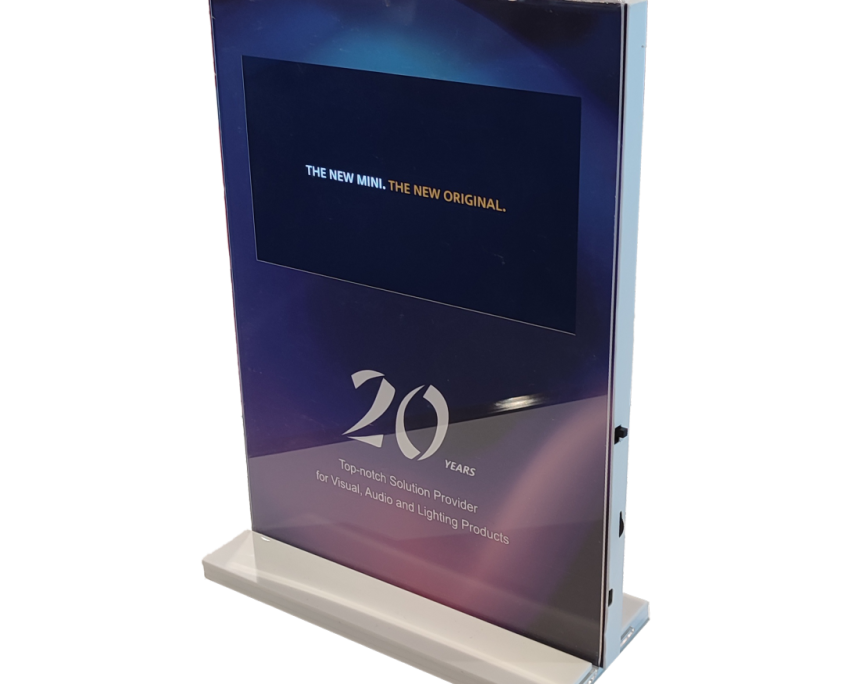 Présentoir de comptoir vidéo écran 10,1″ – Format hors tout 25x25x2/12 cm (Fermé/ouvert)